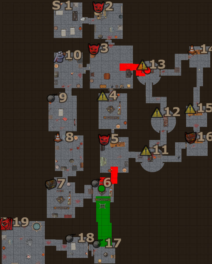 Attempting to destroy the lever will trigger the trap, activating the lever at range (such as with Mage Hand) can trigger the trap from a safe distance. [Customize]In the west path is a locked door (DC 15), with a key on a nearby creature or furniture, that leads to #18